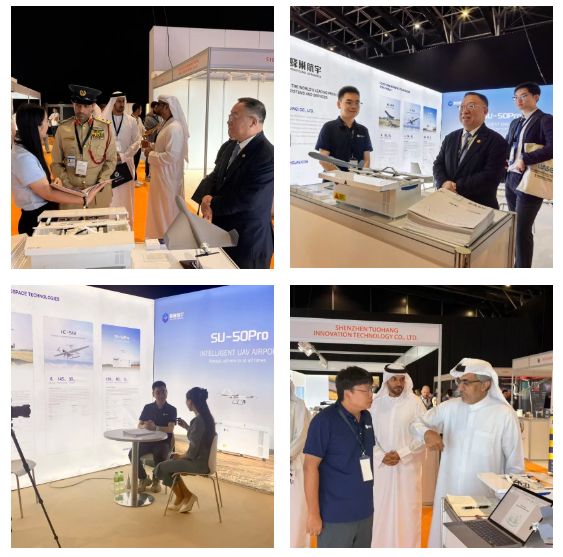 展會(huì)現(xiàn)場,蜂巢航宇展位吸引了大批國際觀眾與合作伙伴駐足交流。世界無人機(jī)大會(huì)主席楊金才、迪拜民航局(DCAA)及阿布扎比能源局(Abu Dhabi DoE)等行業(yè)代表蒞臨蜂巢航宇展臺(tái),深入了解SU-50Pro智能無人機(jī)場的核心技術(shù)與應(yīng)用成果。來自中東客戶對(duì)SU-50Pro在能源安全、城市治理及應(yīng)急管理等領(lǐng)域的應(yīng)用前景表現(xiàn)出濃厚興趣。蜂巢航宇智能無人機(jī)場技術(shù)不僅為低空經(jīng)濟(jì)發(fā)展注入新的動(dòng)力,也為全球無人機(jī)產(chǎn)業(yè)的合作與創(chuàng)新提供了全新思路。